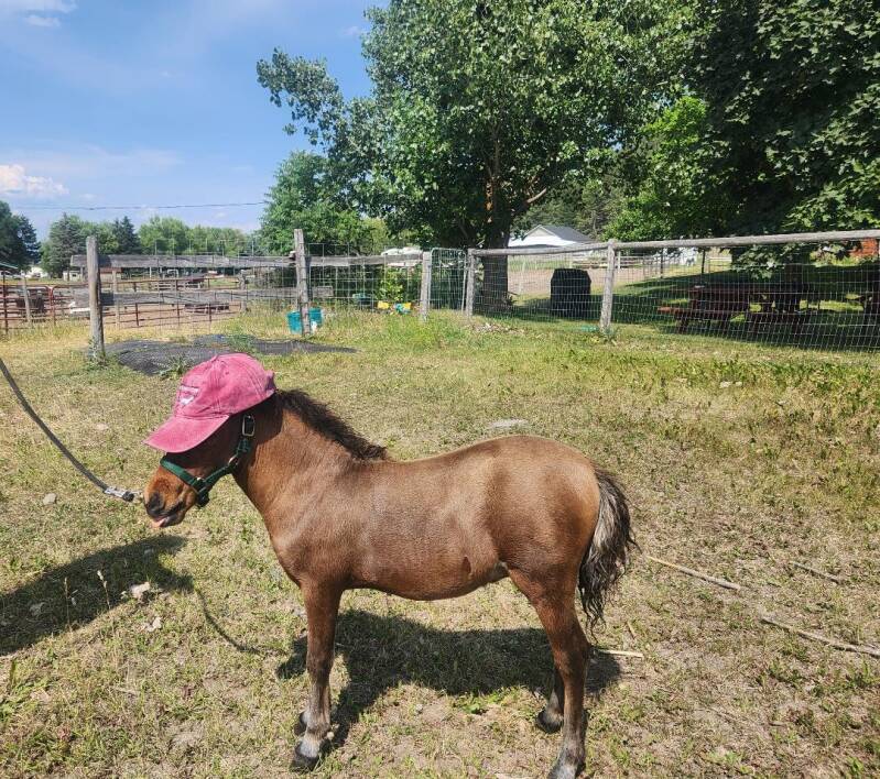 DTA Perfect Mountain Man AMHR Registered 2023 bay colt. Would make a terrific best friend for a child after he is gelded. Should mature around 32". Catches, ties and leads.
